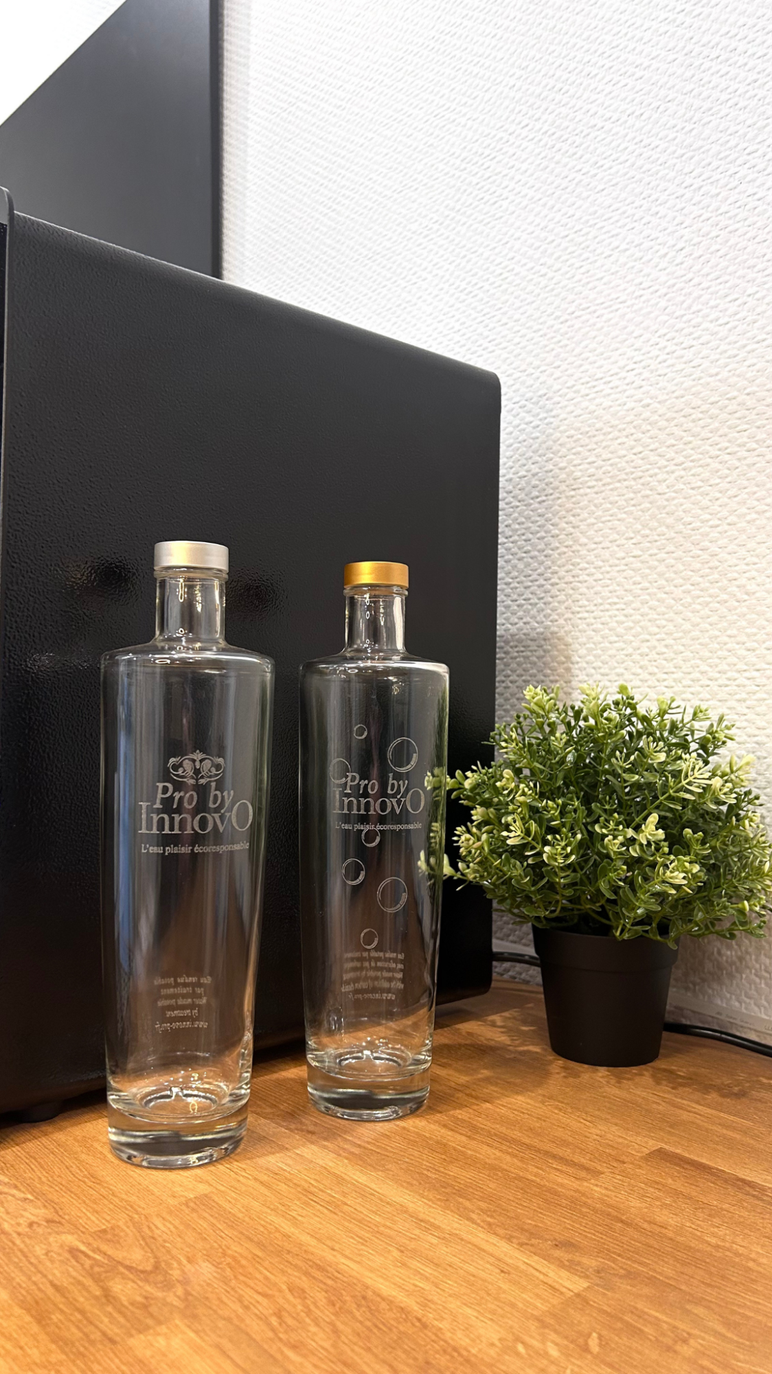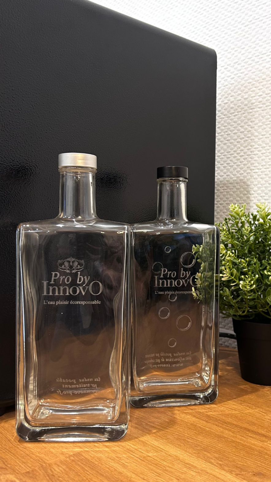 Vous pourrez proposer à vos clients une eau filtrée, plate ou pétillante, servie dans des bouteilles en verre élégantes et réutilisables.